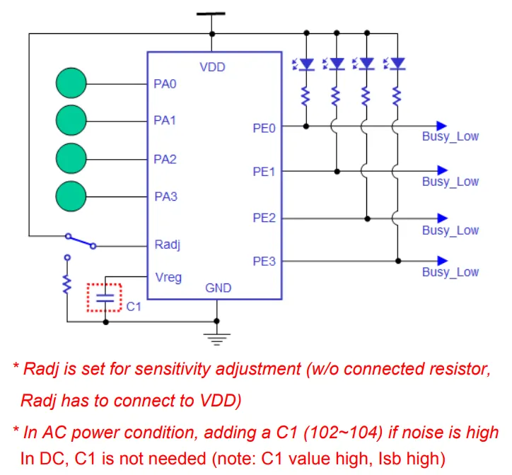 4 kinds of debounce time for Touch-Key press/release detection configured by option in order to keep away from the noise interference.