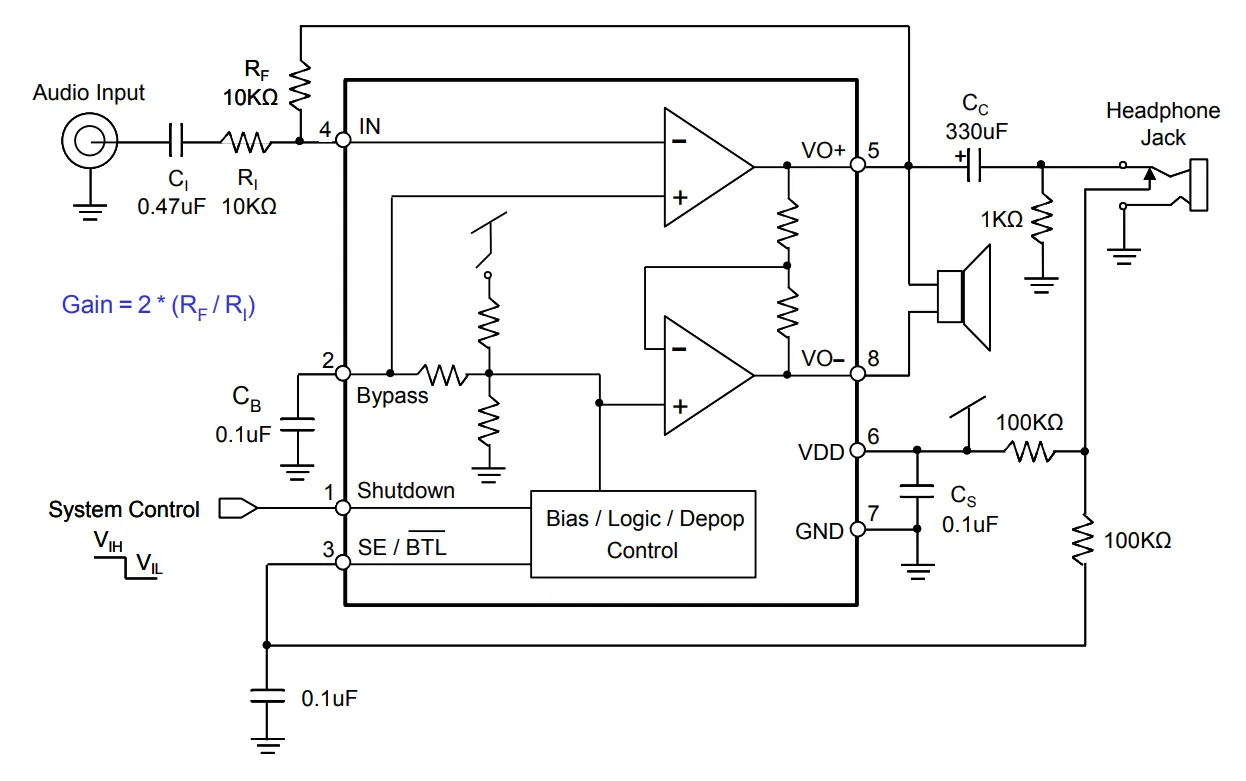 (6). BTL output can directly drive capacitive loads such like piezo-buzzer.